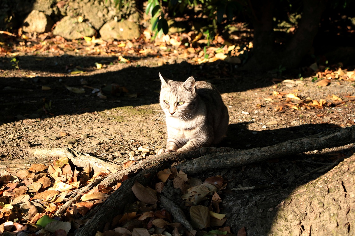 ここは天拝山(標高257.4m)の中腹である。なぜ、野良猫がいるのか不思議だ。痩せている様には見えないが、餌はどうしているのだろうか。何はともあれ仲良くのんびりした彼らを見れば、ここが彼らにとって居心地の良い住まいの様だ。